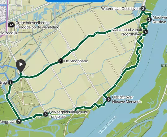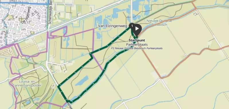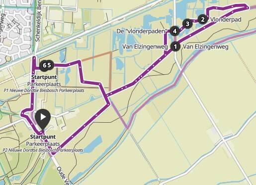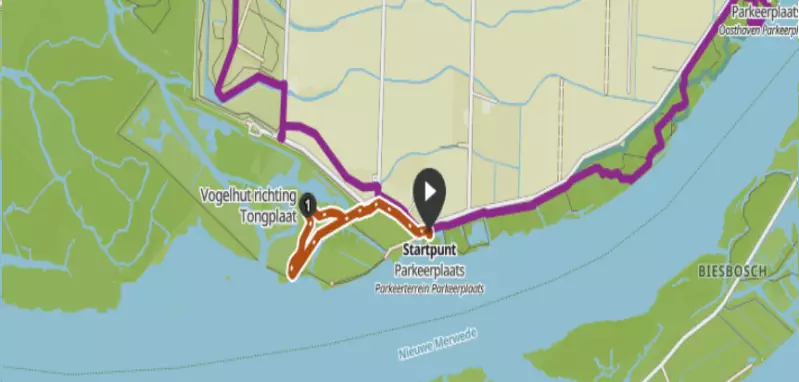 - Startpunt: P1 Nieuwe Dordtse Biesbosch Parkeerplaats