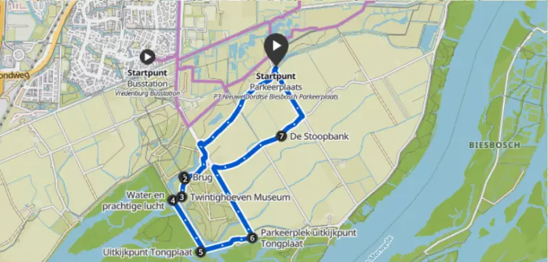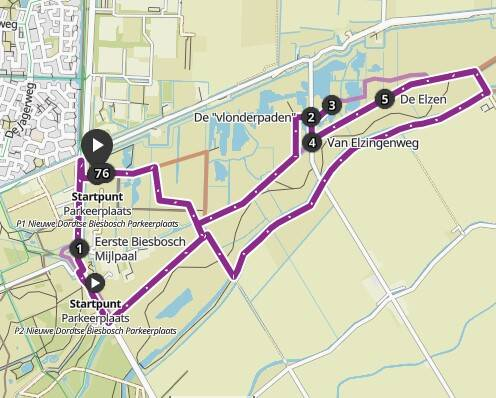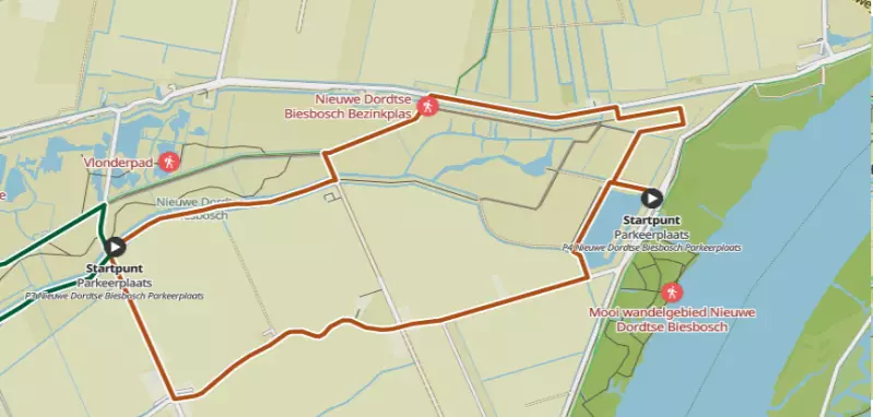- Startpunt: P2 Nieuwe Dordtse Biesbosch Parkeerplaats