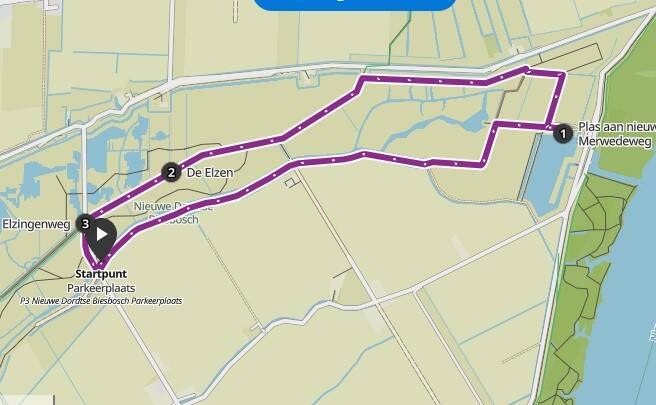- Startpunt: P3 Nieuwe Dordtse Biesbosch Parkeerplaats